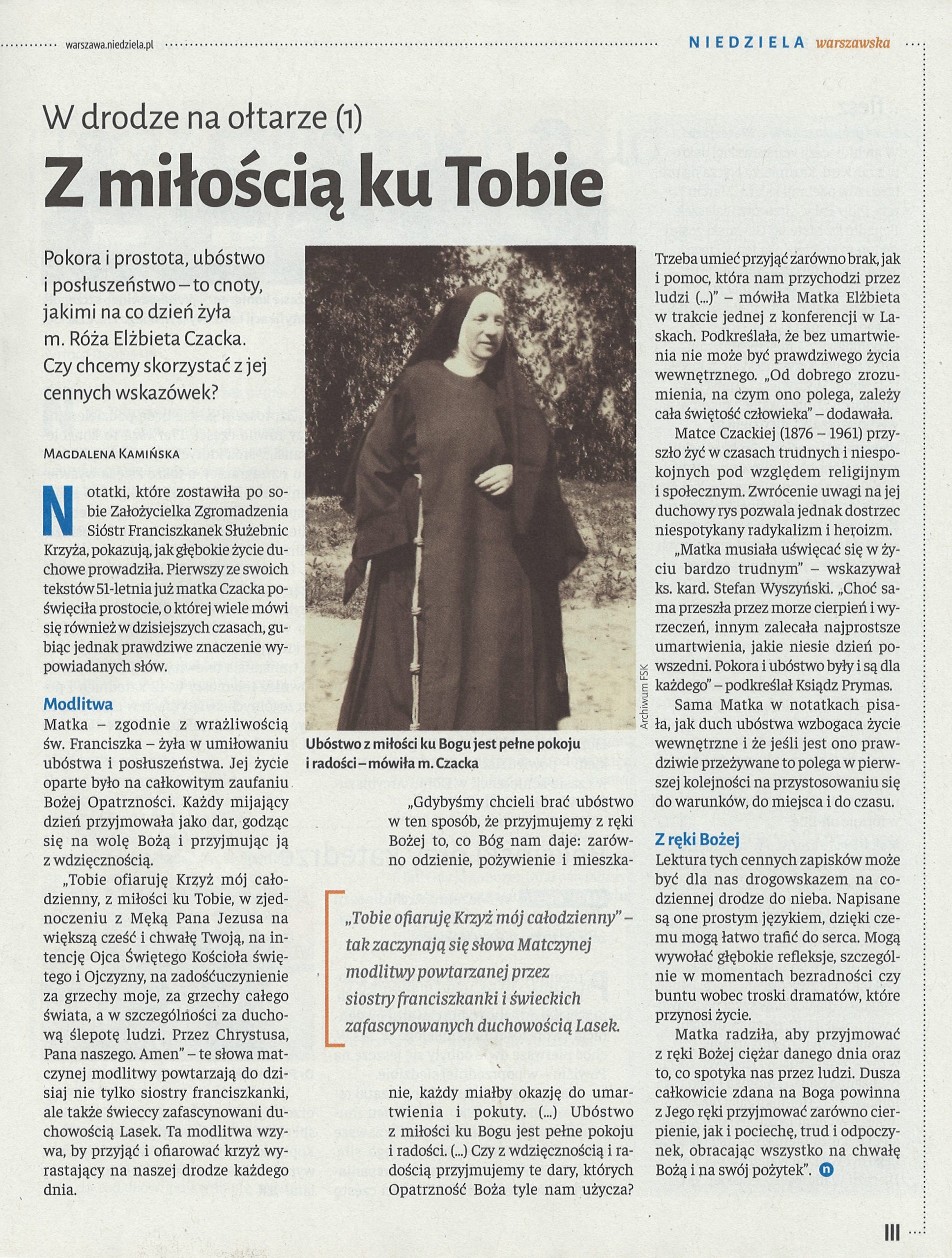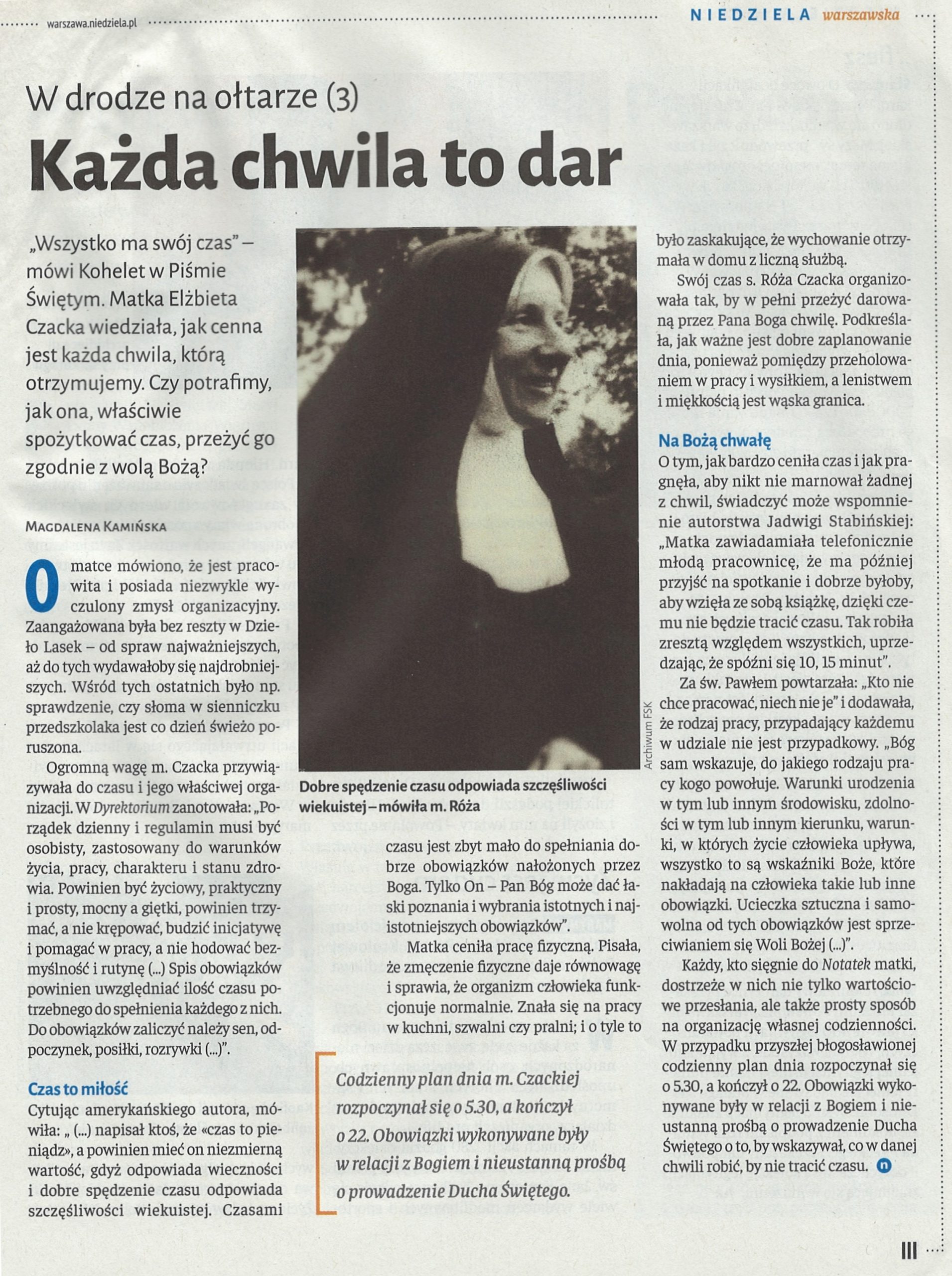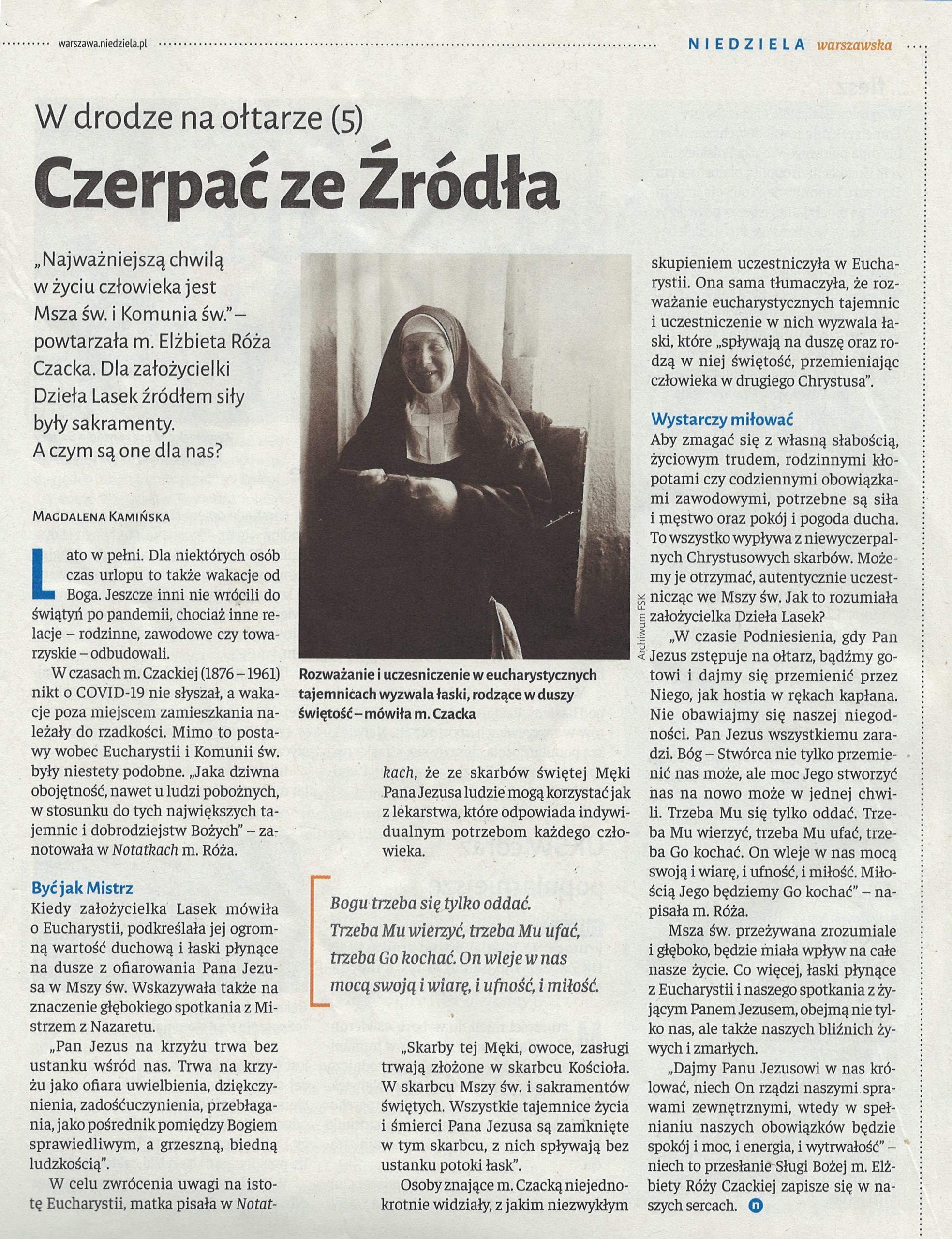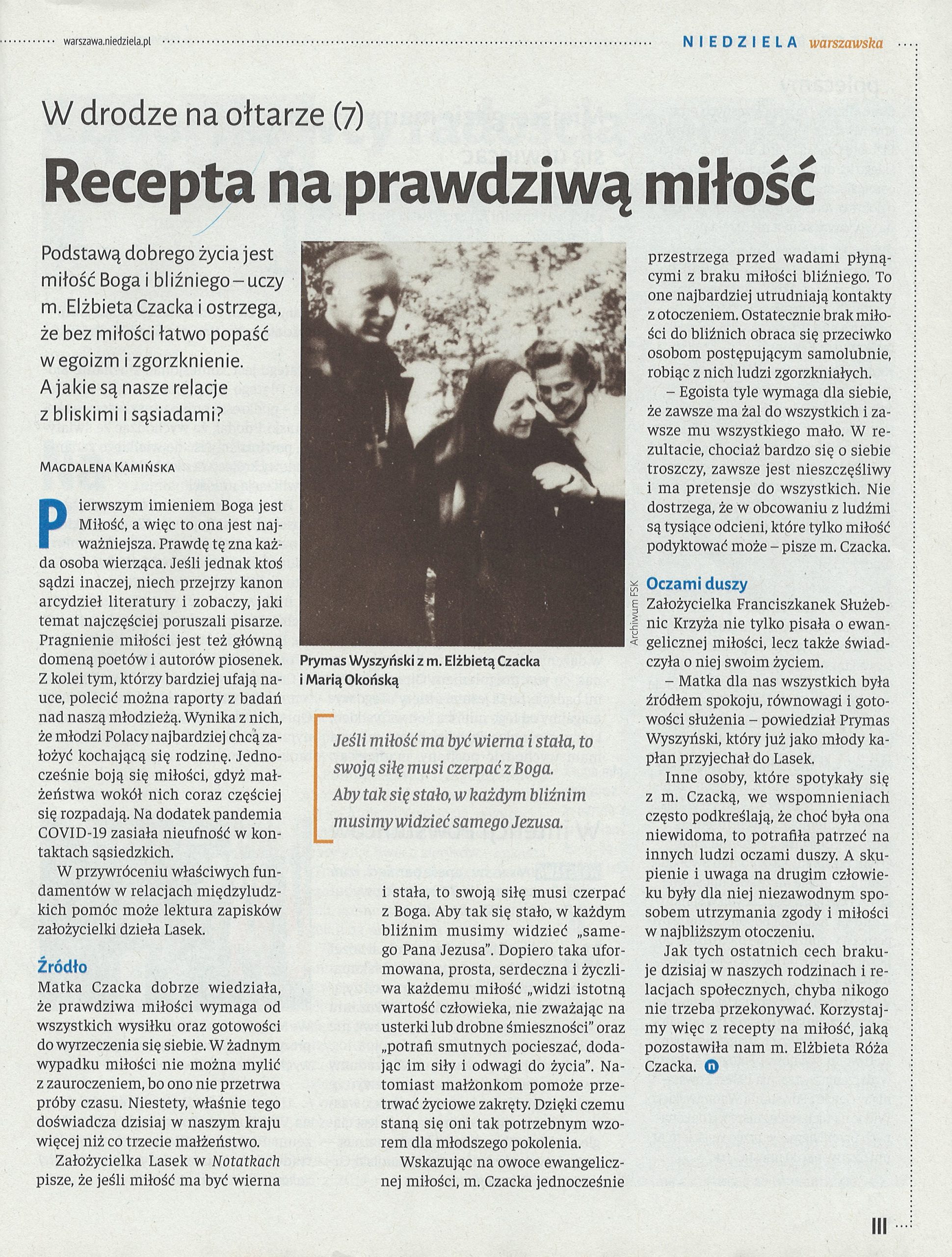 (…) Jesteśmy posłani, to jakiś urząd w Kościele, to misja, musimy rozwinąć w pełni chrześcijaństwo w sobie i w ludziach. Przez Eucharystię – miłość w jedności z Chrystusem i z ludźmi – wszędzie. Nie może być dla nas obcych ludzi. Mamy być braćmi wszystkich: i tych, co dalecy od Boga i tych, co są bliscy. Być otwartym na każdego człowieka. A wszystko dla chwały Bożej! – mówił pierwszy proboszcz i budowniczy Parafii św. Franciszka z Asyżu w Izabelinie ks. Aleksander Fedorowicz.
