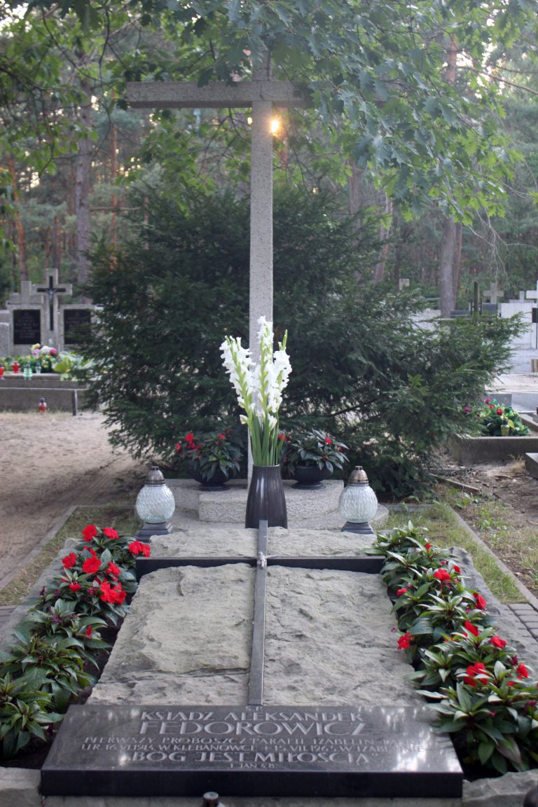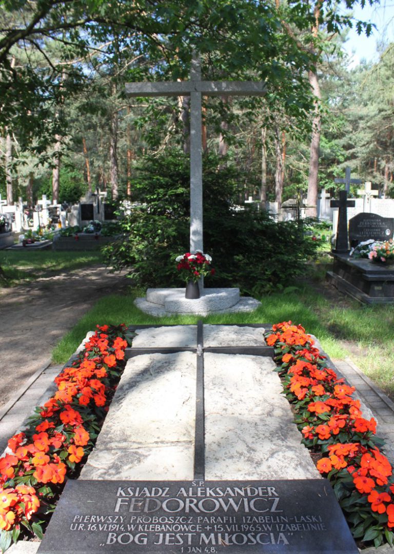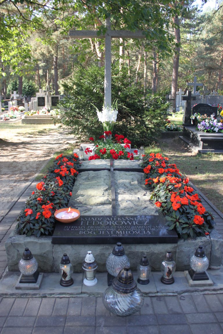 Miejscowy cmentarz usytuowany jest bezpośrednio przy terenie Parafii św. Franciszka z Asyżu w Izabelinie. Można do niego dojść ul. Ks. Aleksandra Fedorowicza oraz boczną drogą, terenem parafialnym. Pierwszy proboszcz Parafii św. Franciszka z Asyżu zmarł w opinii świętości we czwartek, 15 lipca 1965 r. żegnany przez tłumnie odwiedzających go do samego końca wiernych. Pochowany został na izabelińskim cmentarzu w sobotę 17 lipca. Pomimo ulewnego deszczu wierni tłumnie przyszli odprowadzić do grobu ciało ukochanego Ojca. Zgodnie z Jego wolą – na grobie wyryty został cytat z Ewangelii św. Jana „Bóg jest Miłością”. Kolejni proboszczowie dbają o grób ks. Alego. Przychodzą też wierni, którzy coraz liczniej wypraszają łaski u Pana Boga za wstawiennictwem uśmiechniętego ks. Alego.
